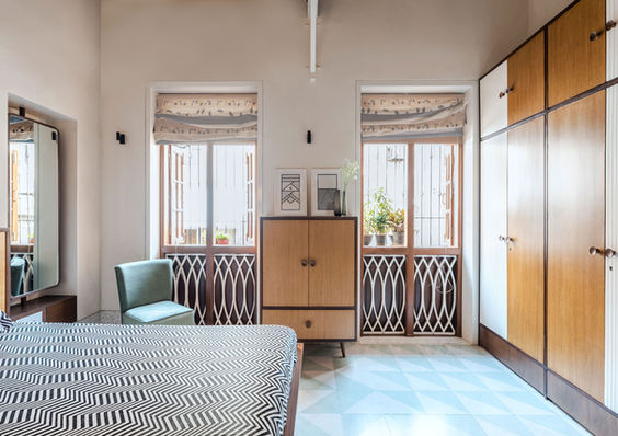 The Vintage Abode which was designed in collaboration with Bhakti Loonawat, is spread over 1,500-square-feet is home to a couple and their daughters,in a 80 year old building in the heart of South Bombay. The client wanted a comfortable and practical home that combines contemporary design with the vintage shell of the apartment.Our idea was to create large open plan spaces, taking advantage of the natural light and magnificent ceiling heights throughout the home. Attention was paid to each detail of the house, even those that may have otherwise stayed out of sight.